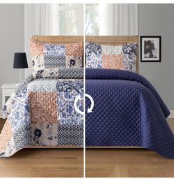 Sold3-Piece Floral Patchwork Reversible Quilt - Soft Bedspread King/Cal Floral Navy$35Chula Vista, CA