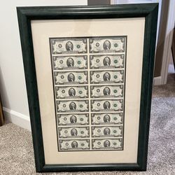 2 Dollar Bill Sheet Framed$400Chicago, IL