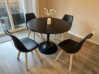 Round Black Tulip Table(D40") and 4 Black Padded Chairs$300Tigard, OR
