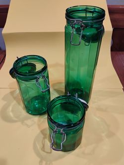 3 vintage Emerald Green Glass 12 Panel Canisters$12La Quinta, CA