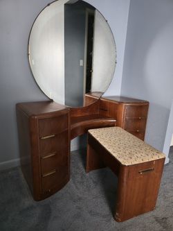Bedroom Vanity Makeup Table & Mirror (Oak Antique Furniture) Dresser Desk Solid Cherry Wood Kling Furniture Co Kling Factories$220Longwood, FL