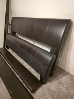 Bed Frame Headboard BedFrame Platform King Queen Leather Upholstered Dark Brown Black Footboard Bedroom Hillsdale Furniture$75Longwood, FL