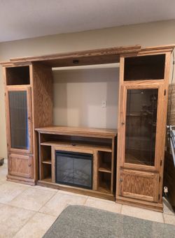Entertainment Center Solid Oak Living Room Furniture Amish TV Cabinet Wall Unit Fireplace Insert 6 Piece OLD CLASSIC$350Winter Springs, FL