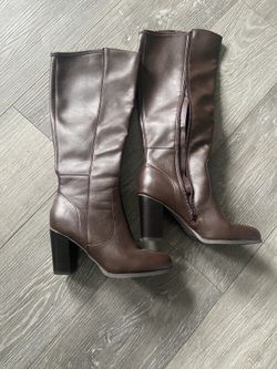 Brown leather knee-high boots with block heel size 6 #leatherboots #kneehighboots #heels$11Revere, MA
