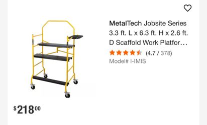 MetalTech Jobsite Series 3.3 ft. L x 6.3 ft. H x 2.6 ft. D Scaffold Work Platform with Safety Rail and Tool Tray, 900 lb. Capacity$125Philadelphia, PA