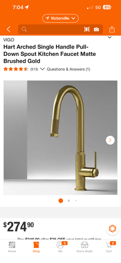 VIGO Hart Arched Single Handle Pull-Down Spout Kitchen Faucet Matte Brushed Gold$175Victorville, CA