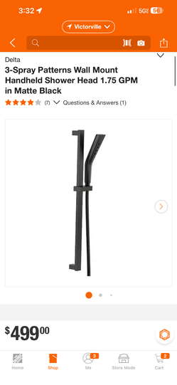 Delta 3-Spray Patterns Wall Mount Handheld Shower Head 1.75 GPM in Matte Black$245Victorville, CA