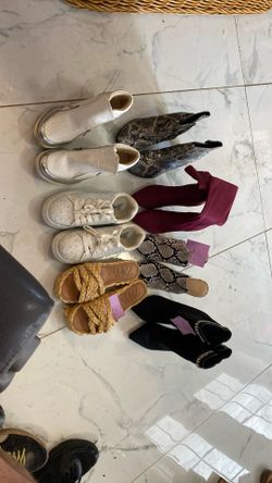 Top Two Pair Boot Size 7 , Top Two Right Pairs Size 10 & Sandals Size 10, Bottom Left Boots Size 8 , Sneakers Size 8 And A Half. $20Pembroke Pines, FL