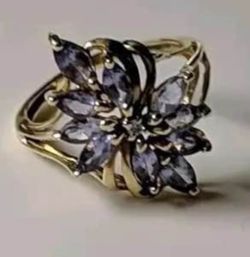 14K Yellow Gold Tanzanite Small Diamond in the Middle Flower Ring Size 7$350Gaithersburg, MD