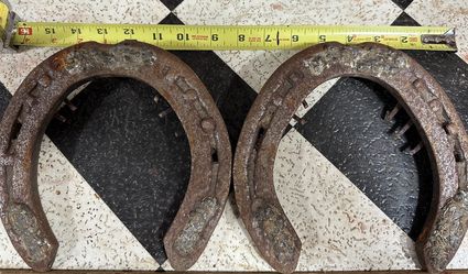 Huge Clydesdale Horseshoes 8” Wide - Used Condition as removed with Ice Cleat and Borium bits welded on for ice traction $75Everett, WA