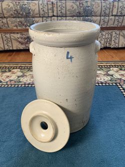 Antique 4-gallon salt-glazed stoneware butter churn crock$195Colorado Springs, CO