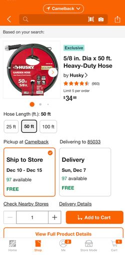 Husky 5/8 in. x 50 ft. Heavy-Duty Hose$25Phoenix, AZ