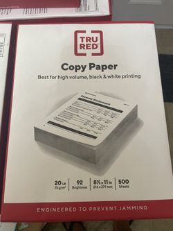 TRU REDâ„¢ 8.5" x 11" Copy Paper, 20 lbs., 92 Brightness, 600 Sheets/Ream $4Ruskin, FL