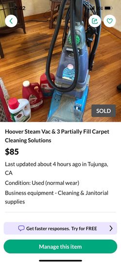 Hoover Steam Vac & 3 Partially Fill Carpet Cleaning Solutions $65Tujunga, CA