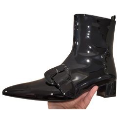 Brand-New Black Patent Faux-Leather Ankle Boots w/Zipper and Large Buckle (9)$50Clovis, CA
