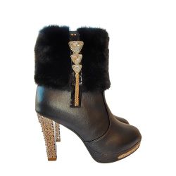 Brand-New Plush Faux-Fur Ankle/Low-Calf Pull-On Boots w/Rhinestone Bling Heel$40Clovis, CA