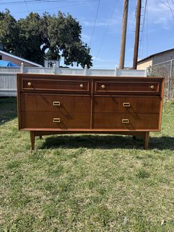 Mid century modern low six drawer dresser by Bassett.$980Hazard, CA