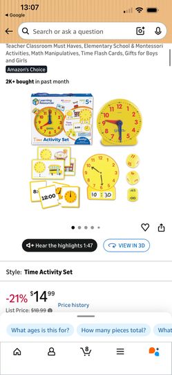 Learning Resources Time Activity Set $8Naperville, IL