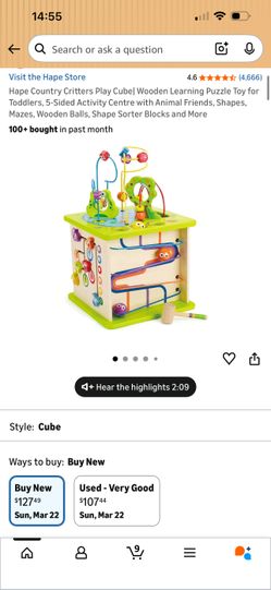 Hape Country Critters Play Cube| Wooden Learning Puzzle Toy for Toddlers, 5-Sided Activity Centre with Animal Friends, Shapes, Mazes, Wooden Balls, Sh$60Naperville, IL