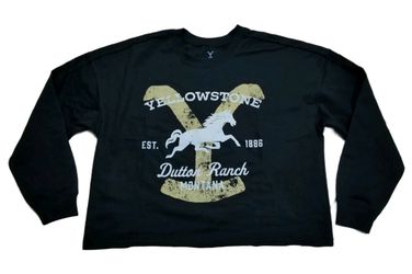 Women's Yellowstone Dutton Ranch Montana Cropped Black Sweatshirt Shirt XL Horse