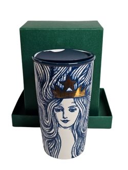 Starbucks 2016 Gold Crown Mermaid Blue Siren Ceramic Travel Tumbler Mug Lid New$75Rincon, GA
