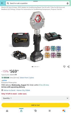 Electric AC Hose Crimper, 2025 Update Air Conditioning Repair Tool Kit with 7 Dies$300Haines City, FL