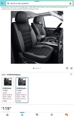 Dodge Ram 1(contact info removed)-2024 Pickup Truck Crew Double Cab Quad Cab Leather Seat Covers(Curved Bench,Black & Grey,2 Front)