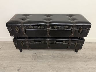 Vintage Black Leather Storage Trunk Ottoman Set (2) - Tufted Top w/ Metal Hardware$100Spring Valley, CA