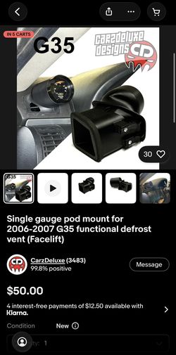 Single gauge pod mount for 2006-2007 G35 functional defrost vent (Facelift)$40Artesia, CA