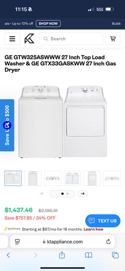 GE GTW325ASWWW 27 Inch Top Load Washer & GE GTX33GASKWW 27 Inch Gas Dryer$550Pico Rivera, CA