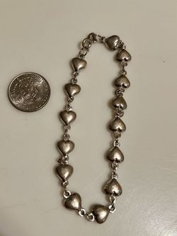 Vintage Sterling Silver Puffy Heart Link Bracelet, Fits Up To Size 7 inch Wrist$45San Diego, CA