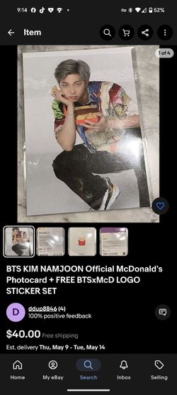 BTS KIM NAMJOON Official McDonald's Photocard + FREE BTSxMcD LOGO STICKER SET$35San Fernando, CA