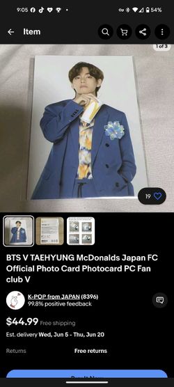 BTS V TAEHYUNG McDonalds Japan FC Official Photo Card Photocard PC Fan club V$35San Fernando, CA