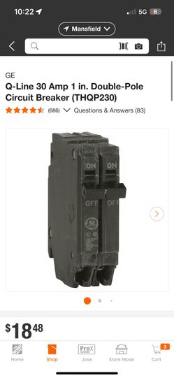 GE Q-Line 30 Amp 1 in. Double-Pole Circuit Breaker (THQP230)$15Mansfield, TX