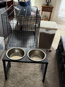 Large dog crate large dog raised food bowls, 50 pound dog food container with scoop$60Duluth, GA