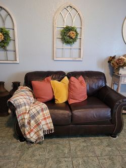 Brown Leather ASHLEY Sofa And Love Seat $600Arlington, TX