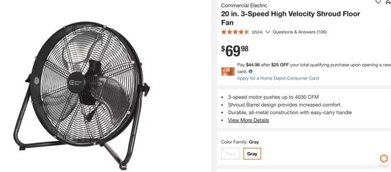 20 in. 3-Speed High Velocity Shroud Floor Fan Commerical Electric$60Los Angeles, CA