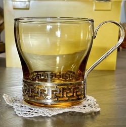 Mid-Century Libbey Greek Key Continental Glass Cup With Gold Tone Metal Holder$20St. Louis, MO