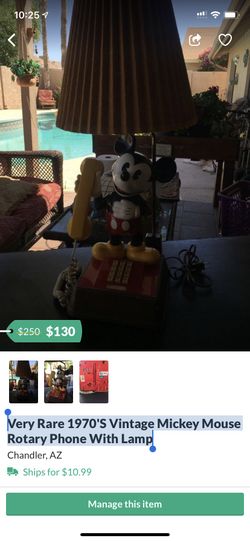 Very Rare 1970'S Vintage Mickey Mouse Rotary Phone With Lamp$85Chandler, AZ
