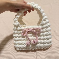Fluffy Popcorn Crochet Bag with Pink Bow – Handmade Mini Purse – Cottagecore Aes$20Chino, CA