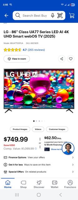 LG UHD AI UA77 86in TV$700Los Angeles, CA