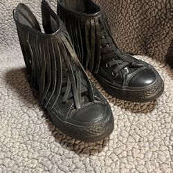 Converse Chuck Taylor Black Leather Fringe Sand Dune High Top Zip Sneakers sz5$40Thornton, CO