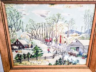 Vintage Grandma Moses Fabric Folk Art$130Williams Township, PA