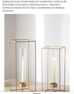 Elegant gold geometric hurricane candle holders for modern tabletops. Crafted with gold metal frames and clear glass chimneys to showcase pillar or ta$15Cty Of Cmmrce, CA