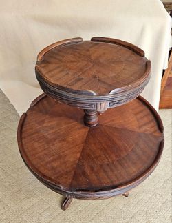 Carved Inlaid 2 Tier Dumbwaiter Table / Parlor Table$250Carrollton, GA