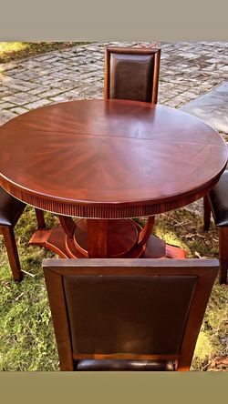 Beautiful wood dining table with 6 leather seat chairs in good condition.....will deliver$180Miami, FL