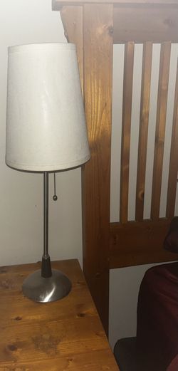 Modern Silver Table Lamp with White Shade & Pull Chain – 24” Tall$9Beverly Hills, CA