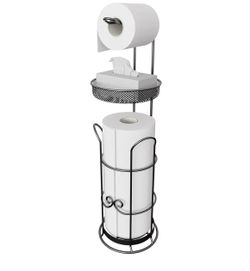 Freestanding Toilet Paper Holder with Shelf – Modern Black Wire Organizer for Bathroom Storage, Holds 4 Rolls with Extra Top Tray for Essentials – Stu$9Beverly Hills, CA