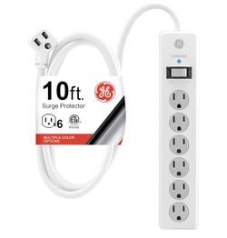 GE 10-Foot Surge Protector Power Strip – 6 Outlet Extender, 800 Joules, Flat Plug, Twist-to-Close Safety Covers, ETL Listed – White$5Beverly Hills, CA