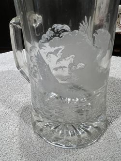 Eagle Italian Beer Stein Pewter Lid Etched Glass 7" Tall Signed Italy FiYe MINT$25Allentown, PA